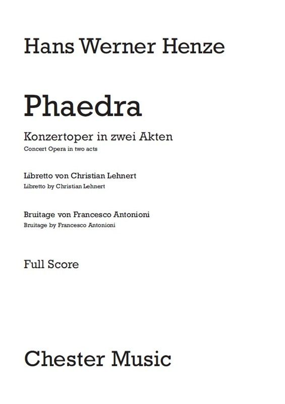 Phaedra by German composer Hans Werner Henze is a 'concert opera' in two acts whose first performance was given at the Berlin State Opera in 2007. Phaedra was Henze's penultimate opera, and this item presents the full score, with the entire work lasting around 75 minutes. Featuring a unique libretto by Christian Lehnert and sound effects by Francesco Antonioni, this opera presents the wonderful story of Phaedra, filled with drama and fantastic music. This Full Score presents the work in German and English language, and features detailed instructions for the supplied CD, on which some sound effects are included that are to be used in conjunction with the instruments. Phaedra was co-commissioned and co-produced by Staatsoper Unter den Linden Berlin, Berliner Festspiele, Théâtre de la Monnaie Brussels, Alte Oper Frankfurt and Wiener Festwochen. Hans Werner Henze was a hugely prolific composer who drew influences from a wide number of sources. Phaedra is regarded as among his greatest works and would certainly make for a stunning performance.