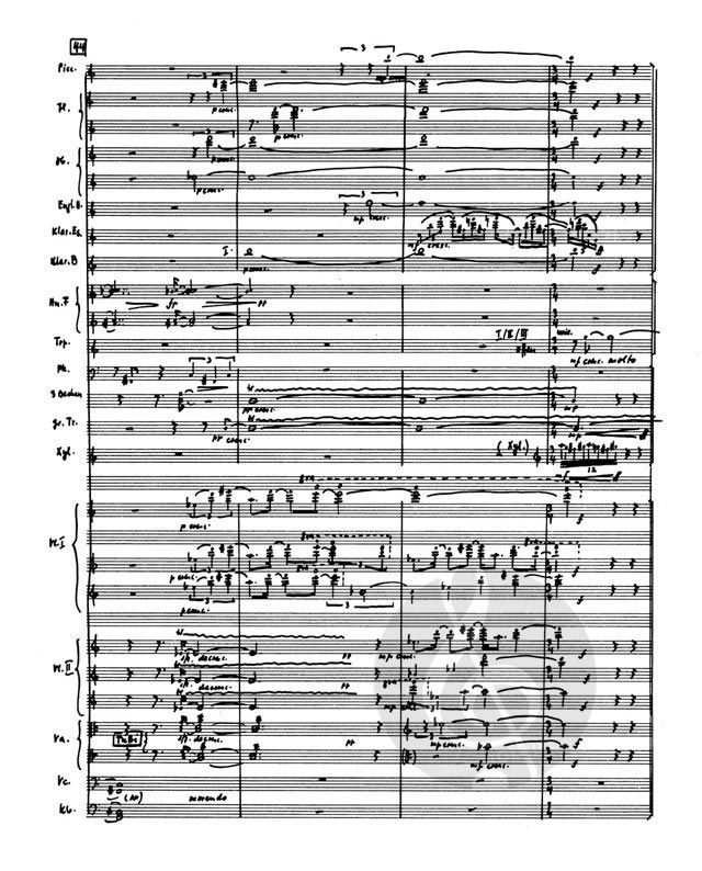 Piccolo, Flöte (2), Oboe (2), Englischhorn, Klarinette in b (2), Klarinette in b 3/ Bass-Klarinette, Fagott (2), Kontrafagott, Horn (4), Trompete (3), Posaune (3), Tuba, Pauke, Schlagzeug (3), Harfe, Streicher - Studienpartitur