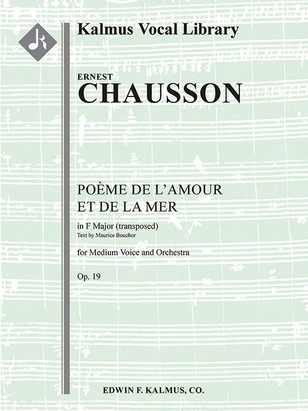 Ernest Chausson (1855-1899) begann 1882 mit der Arbeit an seiner POÈME DE L'AMOUR ET DE LA MER (POEM DER LIEBE UND DES MEERS), OP. 19, im Jahr 1882. Als Ausgangsmaterial wählte der Komponist zwei Gedichte seines Freundes Maurice Bouchor, in denen er dunkle, an Tristan erinnernde Bilder eines windgepeitschten Meeres mit einer Blumensymbolik verknüpfte, die die Erinnerung an die Liebe und das unerfüllte Verlangen ausdrückt. Er stellte 1893 eine überarbeitete Fassung fertig, die schließlich am 21. Februar in Brüssel uraufgeführt wurde, wobei der Komponist die Partitur vom Klavier aus spielte und Désiré Demest als Solist auftrat. Am 8. April 1893 brachte die Société Nationale de Musique die vollständige Orchesterfassung zur Uraufführung, wobei Éléonore Blanc den Gesangspart übernahm. Die Fassungen für hohe Stimme in G (Originaltonart) und für mittlere Stimme in F (transponiert) sind beim Verlag erhältlich. Sätze: I. La Fleur des eaux; Ia. Zwischenspiel; II. La Mort de l'amour. Instrumentation: 2.2.2.2: 2.2.3.0: Timp: Hp: Str (9.8.7.6.5 im Satz): Solo Mittlere Stimme.