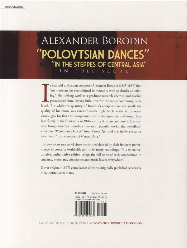 Two of the Russian composer's most popular works, reproduced directly from authoritative standard editions. Notable for lyricism, opulent color, striking harmonic innovations. Now these staples of the orchestral repertoire are available to musicians and music lovers in this attractive, high-quality edition.