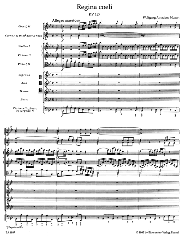 Urtext der Neuen Mozart-Ausgabe. Sopran solo, Gemischter Chor-SATB, Flöte (2), Oboe (2), Horn (2), Pauke, Streicher, Orgel - Partitur; Urtextausgabe