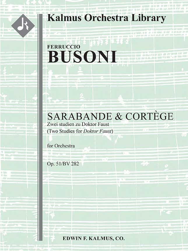 Left incomplete at the time of his death, DOKTOR FAUST occupied Ferruccio Busoni (1866-1924) between the years 1916 and 1924. He had intended it to be his masterpiece. A completed version was constructed by Philipp Jarnach for the first performance of the opera at the Sächsisches Staatstheater in Dresden on May 21, 1925 under the direction of Fritz Busch. The SARABANDE & CORTÈGE: ZWEI STUDIEN ZU DOKTOR FAUST, Op. 51/ BV 282 (TWO STUDIES FOR "DOKTOR FAUST"), a pair of orchestral studies made by the composer while working on his magnum opus, allude to the dark supernatural themes presented in the larger work. Instrumentation: 3(3rd d. Picc).2+2EH.2+BCl.2+CBsn: 4.3.3.1: Timp.Perc(3): Clst.2Hp: Str (9.8.7.6.5 in set). Reprint edition.