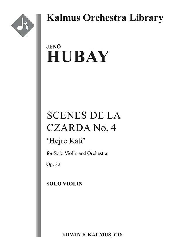 Der ungarische Geiger, Komponist und Musiklehrer Jenö Hubay (1858-1937) schrieb insgesamt vierzehn SCENES DE LA CZARDA (auch SCÈNES DE LA CSÁRDA) über einen Zeitraum von vierzig Jahren zwischen 1879 und 1920. Sie waren für Hubays persönlichen Gebrauch in Konzerten und im Unterricht gedacht und wurden alle für Violine und Klavier geschrieben, obwohl einige später vom Komponisten orchestriert wurden. SCENES DE LA CZARDA Nr. 4, op. 32 aus dem Jahr 1890 ist das bekannteste, obwohl die meisten es unter dem Untertitel HEJRE KATI kennen. Das Werk verwendet drei ungarische Melodien: Der gelbe Hengst, Die Liebe eines jungen Barons und eine unbetitelte Volksmelodie, die Brahms auch in seinem UNGARISCHEN TANZ Nr. 21 verwendete. Besetzung: 2.2.2.2: 3.2.2.0: Timp.Perc(1-2): Hp. Str(9-8-7-6-5 im Satz): Solo Vn im Satz: PARTITUR NICHT VERFÜGBAR. Nachdruck Ausgabe.