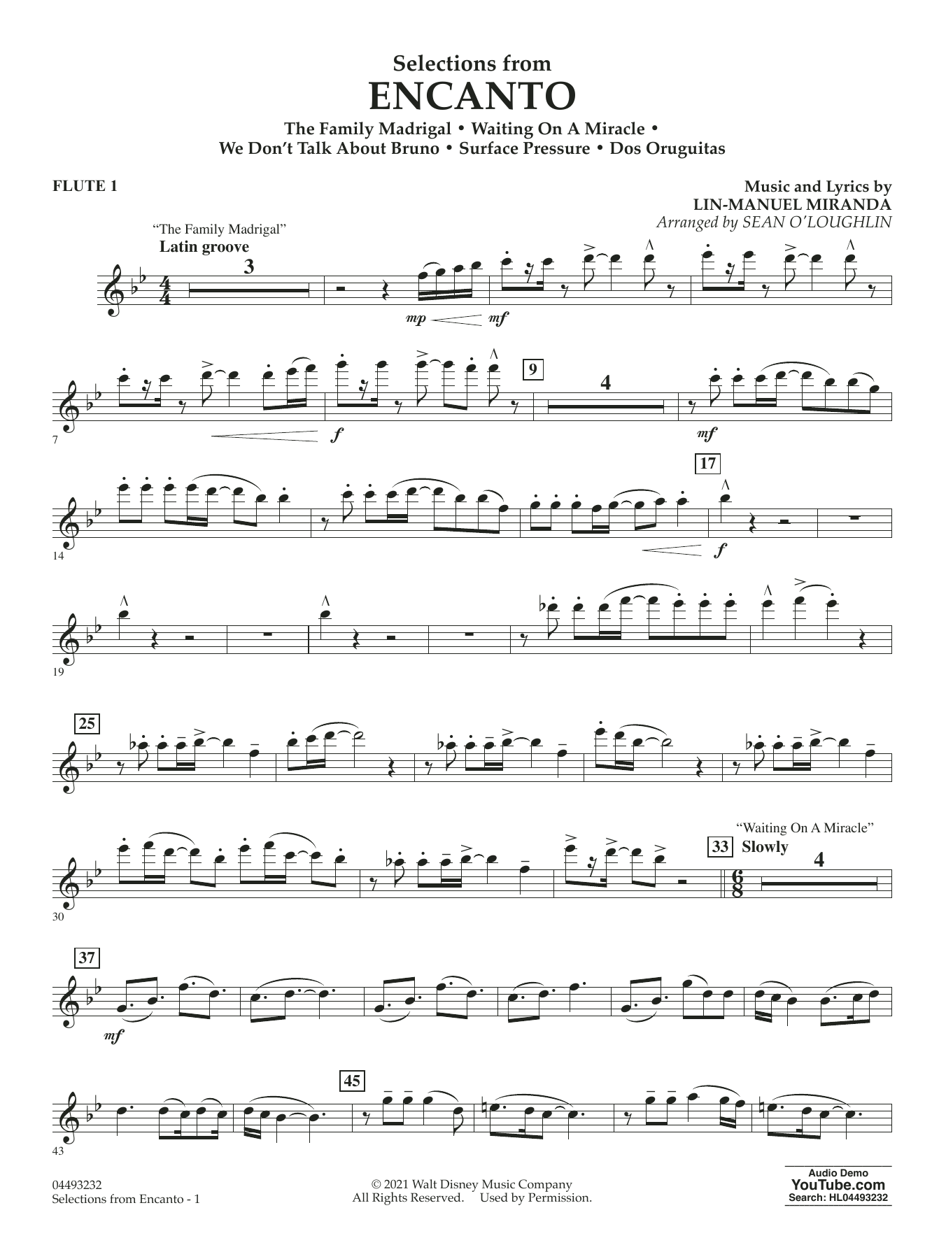 Das unwiderstehliche Latin-Flair und die Hits aus dem erfolgreichen Disney-Film sind in diesem brillanten Medley für volles Orchester meisterhaft eingefangen. Mit den Hits "The Family Madrigal", "Waiting on a Miracle", "We Don't Talk About Bruno", "Surface Pressure" und "Dos Orguitas" wird dieses Werk ein Favorit für Musiker und Konzertbesucher sein.