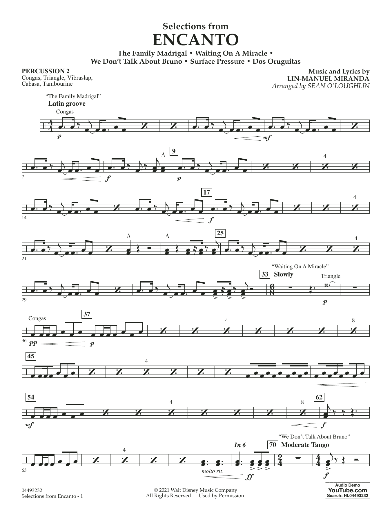 Das unwiderstehliche Latin-Flair und die Hits aus dem erfolgreichen Disney-Film sind in diesem brillanten Medley für volles Orchester meisterhaft eingefangen. Mit den Hits "The Family Madrigal", "Waiting on a Miracle", "We Don't Talk About Bruno", "Surface Pressure" und "Dos Orguitas" wird dieses Werk ein Favorit für Musiker und Konzertbesucher sein.