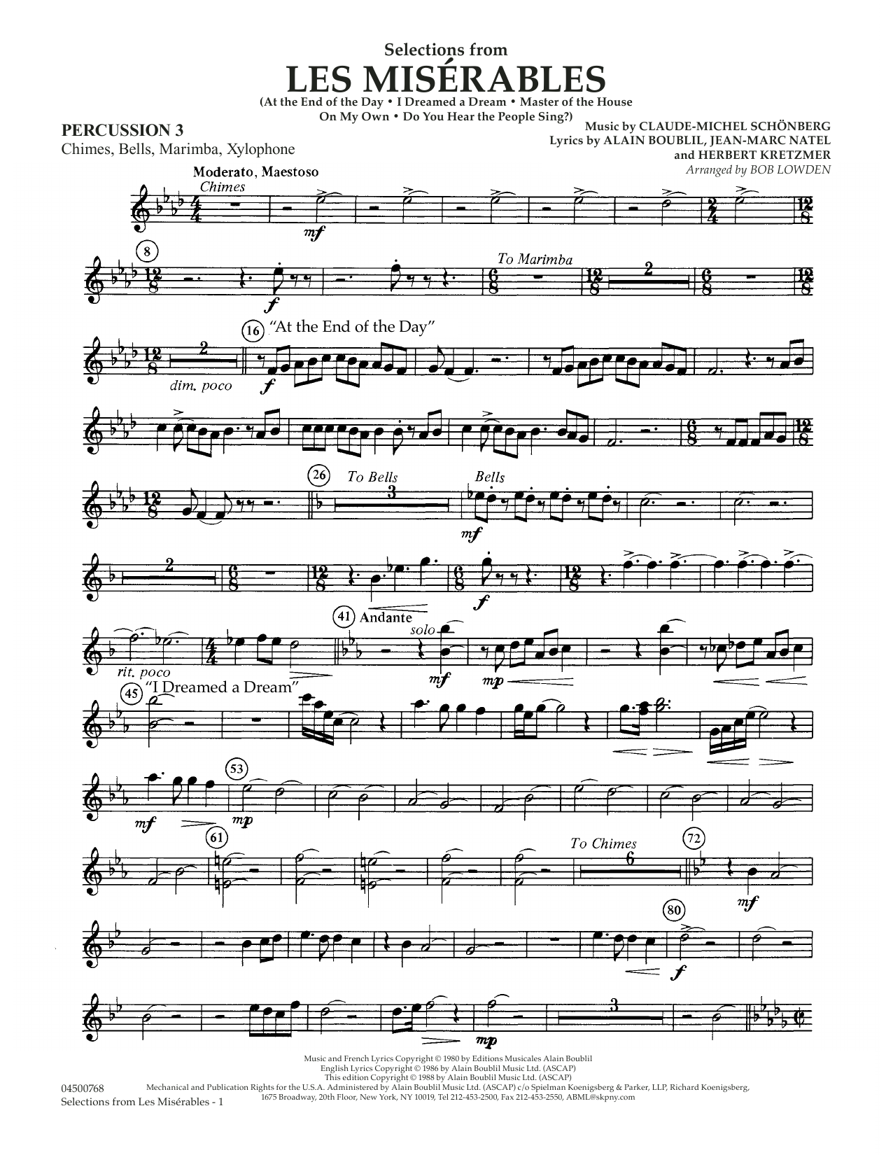 Noten für Sinfonieorchester: Medley aus 'Les Miserables' mit u. a. 'Do You Hear The People Sing?', 'I Dreamed A Dream' und 'On My Own'.