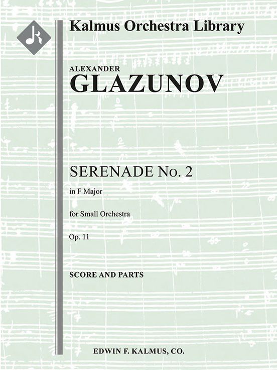 Alexander Glazunov (1865-1936) composed the beautiful Serenade No. 2 in F Major, Op. 11 in 1884, before his "creative crisis" of 1890. For a small orchestra, it was premiered in 1885, his friend and mentor Nicolai Rimsky-Korsakov conducting. Instrumentation: 2.1.2.2: 2.0.0.0: Str (9-8-7-6-5 in set).