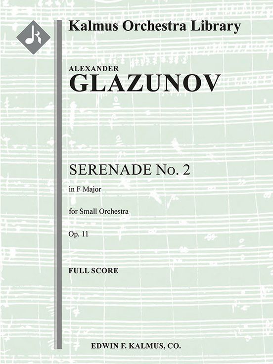 Alexander Glazunov (1865-1936) composed the beautiful Serenade No. 2 in F Major, Op. 11 in 1884, before his "creative crisis" of 1890. For a small orchestra, it was premiered in 1885, his friend and mentor Nicolai Rimsky-Korsakov conducting. Instrumentation: 2.1.2.2: 2.0.0.0: Str (9-8-7-6-5 in set).
