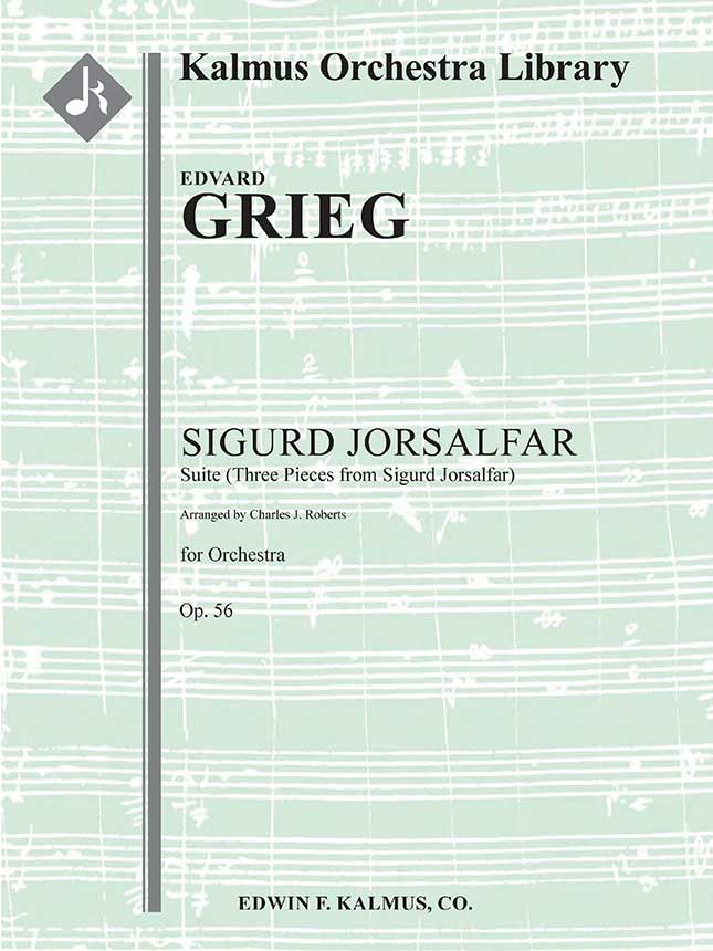 SIGURD JORSALFAR, OP. 22 wurde von Edvard Grieg (1843-1907) für ein Theaterstück von Bjørnstjerne Bjørnson zu Ehren von König Sigurd I. komponiert. Die Bühnenmusik wurde am 10. April 1872 in Christiania uraufgeführt und besteht aus neun Teilen, von denen Grieg drei für eine Orchestersuite auswählte, die als OP. 56. Die Suite wurde am 5. November 1892 in Oslo uraufgeführt. Der erste Satz kontrastiert die Persönlichkeiten der beiden königlichen Brüder Sigurd und Eystejn. Das Intermezzo hat seinen Ursprung in einer Gavotte für Violine und Klavier von 1867. Der letzte Satz, ein Marsch, erzählt von der Versöhnung der Brüder nach ihrer Trennung aufgrund eines schweren Streits. Die vorliegende Bearbeitung für Salon/Theaterorchester wurde 1913 von Charles J. Roberts fertiggestellt. Besetzungen: 1.1.2.1: 2.2.1.0: Timp.Perc(2-3): Str (9.8.7.6.5 im Satz): Pno Cond Sc im Satz.