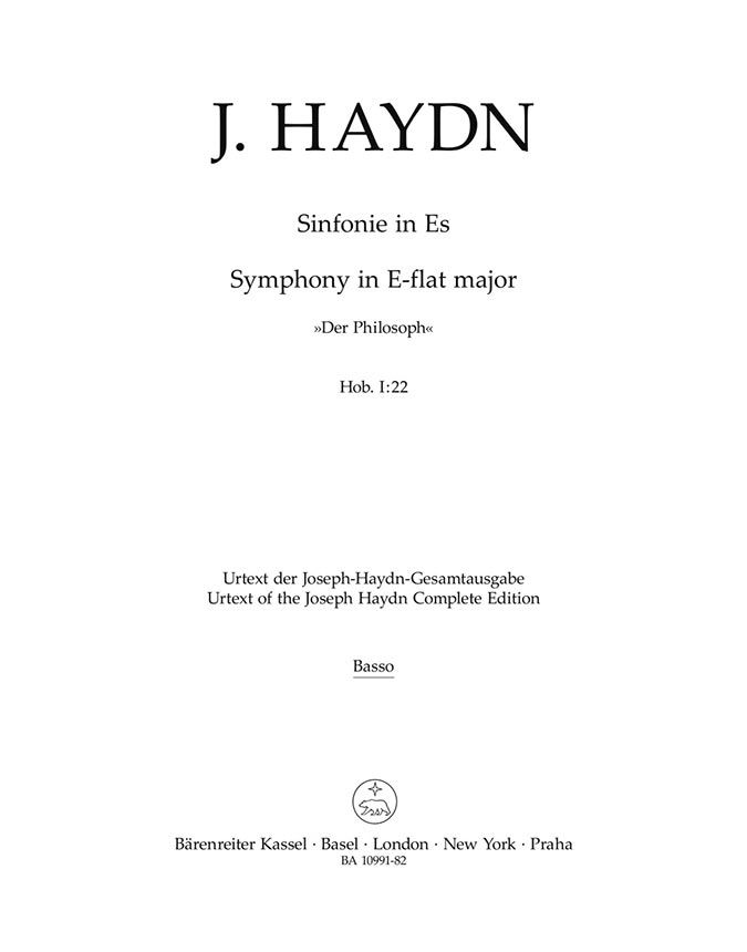 Joseph Haydn schrieb die Sinfonie Nr. 22 in Es-Dur 1764 im Rahmen seiner Anstellung als Vizekapellmeister am Esterházyschen Fürstenhof. Das Werk ist einzigartig aufgrund seiner Besetzung mit zwei Englischhörnern: Dieses Instrument, das Haydn seit ca. 1760 in einigen Divertimenti einsetzte, erklingt in keiner anderen Sinfonie Haydns – oder auch anderer Komponisten jener Zeit. Zweifellos stellt das Werk ein Experiment des Komponisten mit der Klanglichkeit der Sinfoniegattung dar – wobei aber Abschriften dieser Komposition belegen, dass die Englischhornstimmen in Aufführungen andernorts gern durch Flöten oder Oboen ersetzt wurden. Eine weitere Eigenart dieser Sinfonie ist ihr langsamer, ernsthafter Kopfsatz mit Bläser-„Choral“, dessen auffälliger Charakter der Sinfonie ihren (wohl nicht authentischen, erst später belegten) Beinamen „Der Philosoph“ eingebracht haben dürfte.
