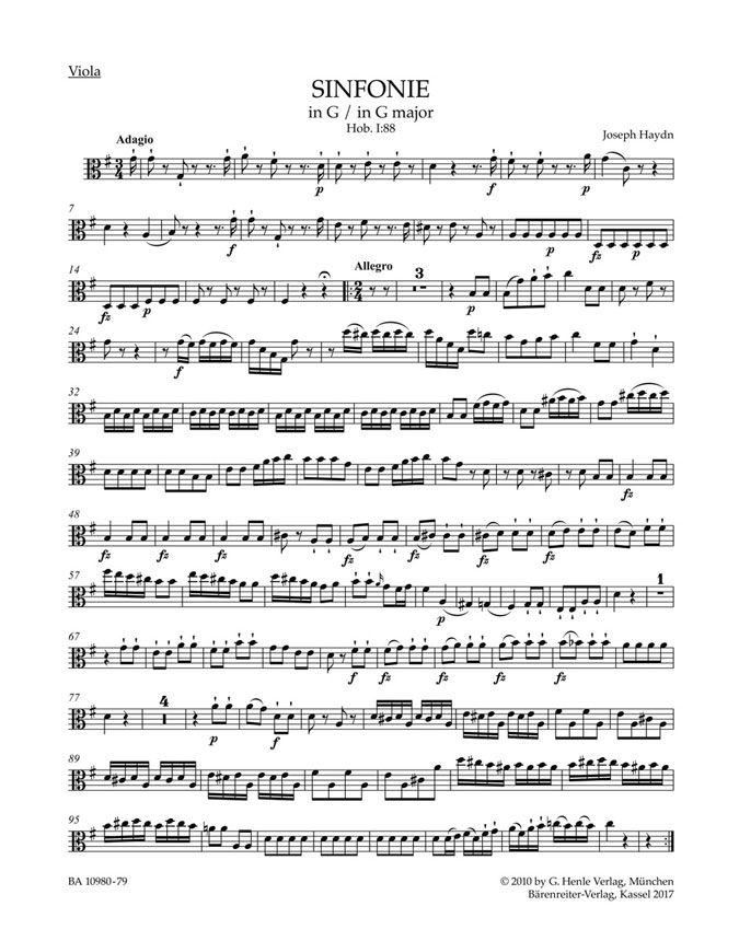Die vorliegende Ausgabe stellt einen lange missverstandenen aufführungspraktischen Aspekt Haydns Sinfonie in G klar: Im ersten Takt des zweiten Satzes (Largo) sind die Viola- und die Violoncello-Partie sowie einige Bläserstimmen mit einem 'Solo'-Vermerk versehen, Hinweise darauf, dass diese Stimmen wichtige Motive oder Themen zu spielen und hervorzutreten haben. Der Solo-Vermerk im Violoncello ist nicht als Angabe für eine solistische Besetzung zu verstehen, wobei die übrigen Celli die Bässe zu verdoppeln hätten, wie in anderen Ausgaben fälschlich angegeben. Vielmehr sollen die Celli chorisch spielen, um besser hervortreten zu können.