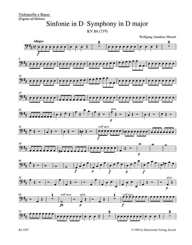 - Ausgabe Einzelstimme Cello, Kontrabass und Fagott (Urtext)