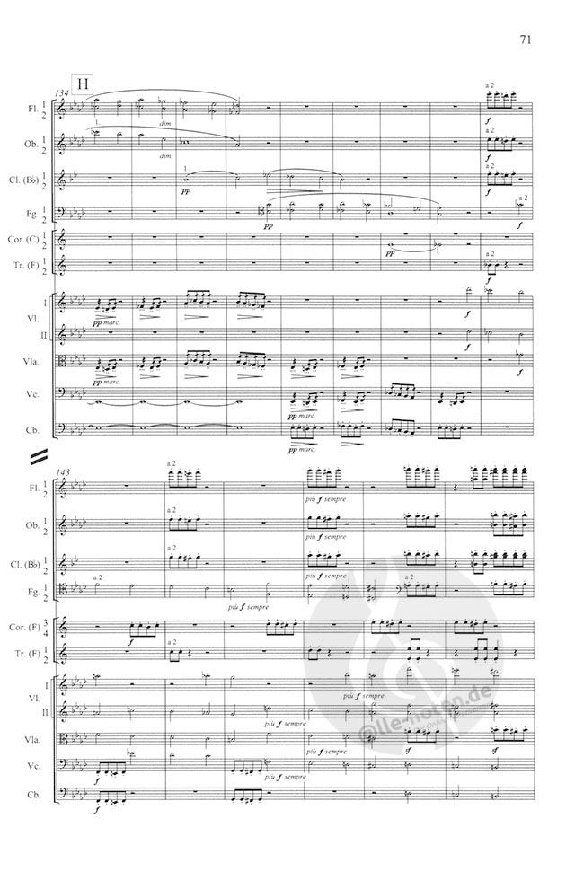 - Streicher, Schlagzeug, Pauke, Harfe, Celesta und Klavier