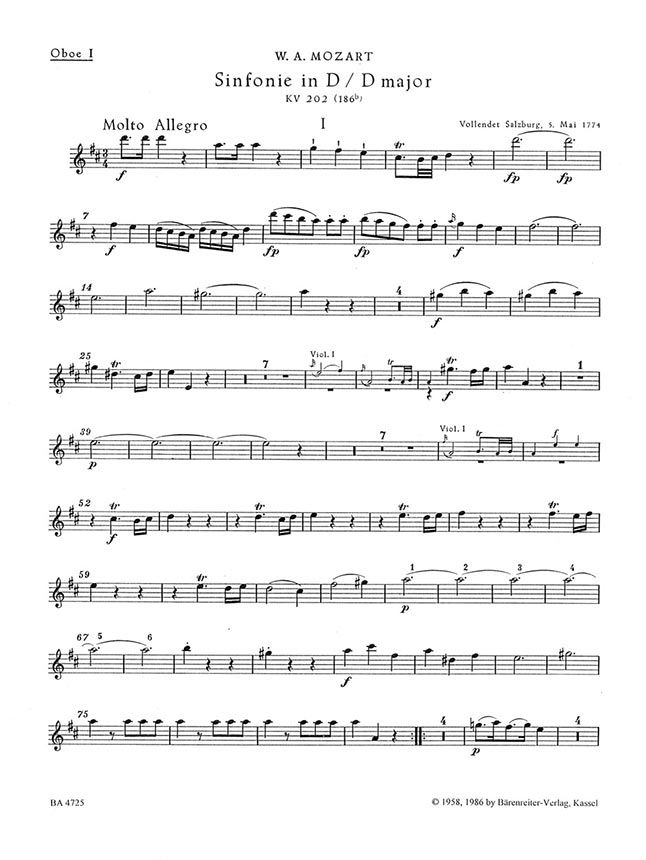 Sinfonie Nr. 30 D-Dur KV 202 (186b)