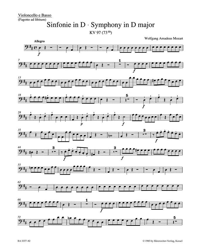- Ausgabe Einzelstimme Cello, Kontrabass und Fagott (Urtext)