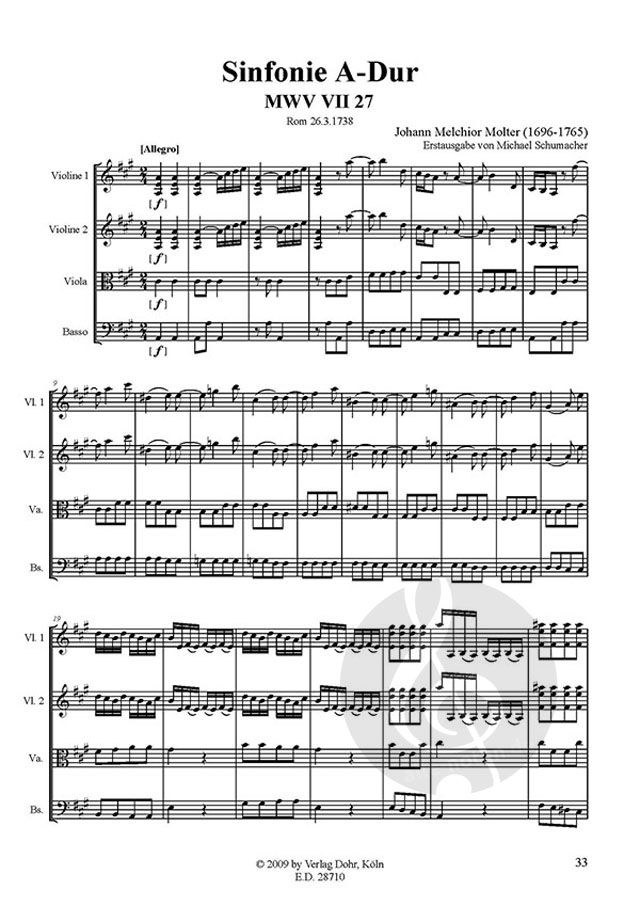 Reihe: Molter - Sämtliche Sinfonien Vol. 10. Orchester; Partitur. Format: 46 S. - 29,7 x 21 cm.