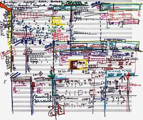 Zum 60. Geburtstag des Komponisten (1993) entstand eine aufwändig gestaltete Mappe mit vierfarbigen Faksimiles seiner Skizzen zu 'Die schwarze Maske', 'Utrenja I/II' und 'Kosmogonia'.