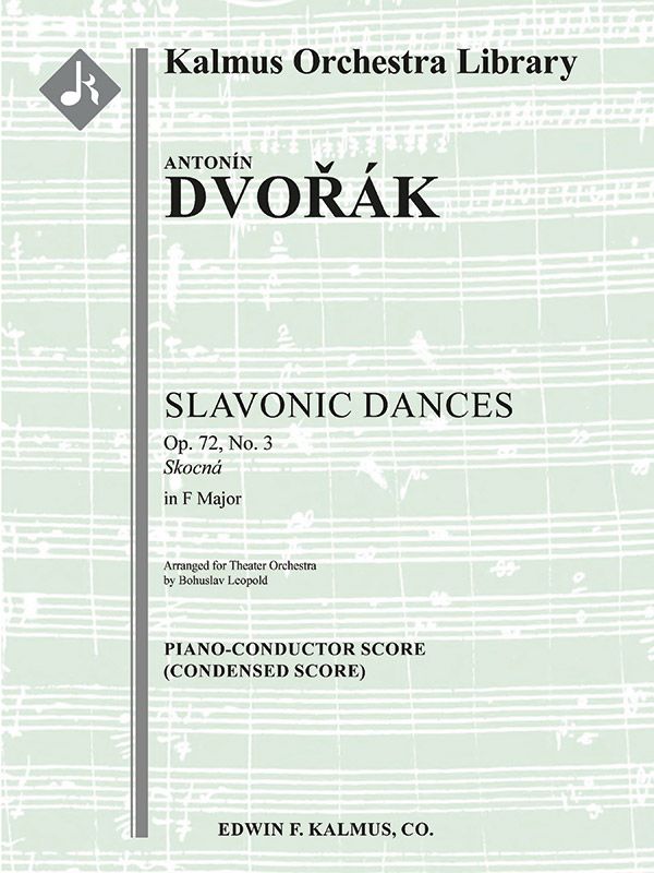 Antonín Dvorák (1841-1904) komponierte zwei Serien von Slawischen Tänzen, die jeweils aus acht Nummern bestehen und im Abstand von acht Jahren entstanden sind. Die Idee dazu wurde dem Komponisten von seinem Verleger N. Simrock vorgeschlagen, nachdem dieser die Mährischen Duette von Johannes Brahms vorgestellt hatte. Simrock, der die nationalen Eigenheiten und das Talent des bis dahin unbekannten tschechischen Komponisten kannte, schlug ihm vor, eine Reihe von "Slawischen Tänzen" in einem ähnlichen Stil zu schaffen, wie er sich kurz zuvor auf der Grundlage der Ungarischen Tänze von Brahms so erfolgreich bewährt hatte. Indem er nur die Rhythmen als das charakteristischste und ausdrucksstärkste Element der slawischen Musik und nicht die ursprünglichen Volkstänze verwendete, vollendete Dvorák schnell die zweite Serie von acht Tänzen (Opus 72) für Klavierduo, die er oft noch während des Komponierens orchestrierte. Sie gelten als die persönlichsten, national charakteristischsten und berühmtesten Werke Dvoráks. Der tschechische Komponist und Geigenvirtuose Bohuslav Leopold (1888-1956) arrangierte mehrere der Slawischen Tänze für kleines Theaterorchester, darunter diese Bearbeitung von Op. 72, Nr. 3, Skocná (auch als Nr. 11 bezeichnet, wenn man die ersten acht Tänze aus Op. 46 berücksichtigt). Besetzung: 2.2.2.2: 4.2.3.0: Timp.Perc(2): Str (9-8-7-6-5 im Satz) (Bläser werden für die Aufführung durch kleinere Orchestern gekreuzt).
