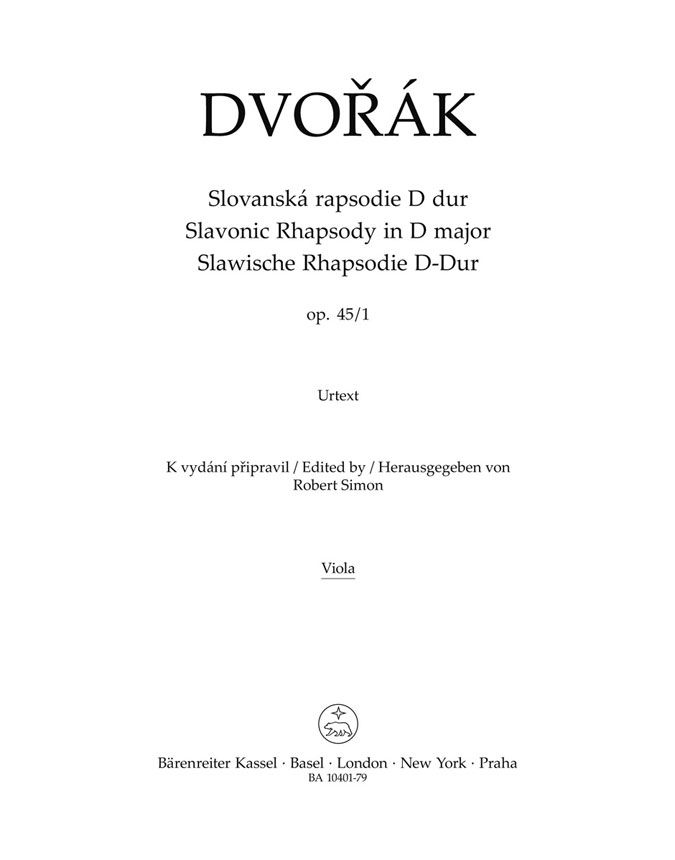 Die 'Slawische Rhapsodie' Nr. 1 D-Dur erscheint nun in einer Urtext-Edition. Als Hauptquelle der neuen kritischen Ausgabe diente dem Herausgeber der von Dvorák autorisierte Erstdruck.