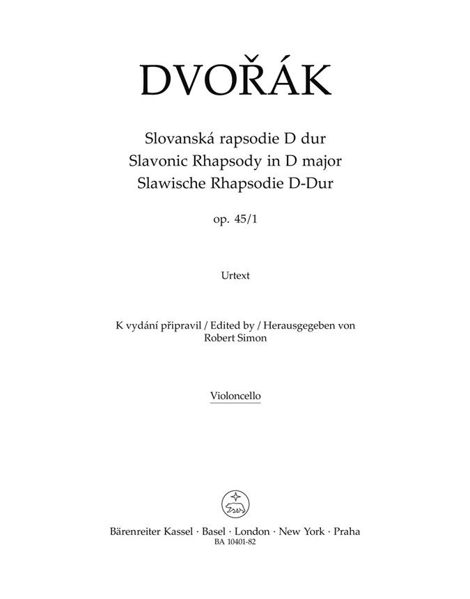 Die 'Slawische Rhapsodie' Nr. 1 D-Dur erscheint nun in einer Urtext-Edition. Als Hauptquelle der neuen kritischen Ausgabe diente dem Herausgeber der von Dvorák autorisierte Erstdruck.