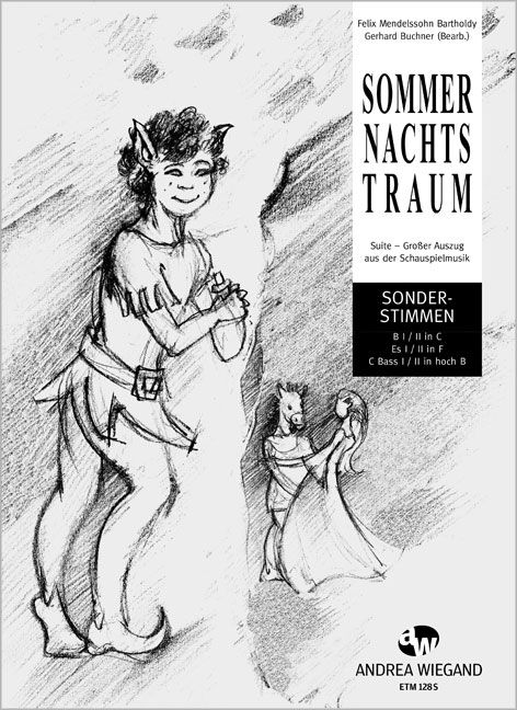 Acht verschiedene Bläser bringen ad lib. zusätzliche Farben. Neben zwei Flöten, einer Klarinette, einer Trompete (oder zweiter Klarinette) sind zwei Altsaxophone bzw. Hörner sowie zwei Bassinstrumente (alternativ Posaune, Fagott, Tuba) vorgesehen. Nicht alle Bläser müssen besetzt werden, weil durch die Streicher jederzeit das harmonische und melodische Gerüst erhalten bleibt.Der Klavierauszug macht jedem einigermassen geübten Pianisten viel Vergnügen, zumal er Zettels Lied in der Aufführung allein begleiten darf. Das Elfenlied kann rein instrumental oder mit einem Chor (Sopran und Alt) vorgetragen werden.