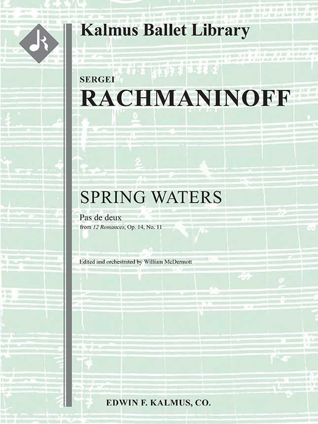 SPRING WATERS: PAS DE DEUX ist ein kurzes Ballettstück aus dem Jahr 1959 mit Musik von Sergej Rachmaninow (1873 - 1943). Das Werk wurde von Asaf Messerer choreographiert und ist auf sein Lied für Sopran SPRING WATERS (Nr. 11) aus 12 ROMANCES, Op. 14, abgestimmt. Das Lied des russischen Dichters und Diplomaten Fjodor Tjutschew beschreibt die Ströme von frisch geschmolzenem Wasser, die den nahenden Frühling ankündigen. Das Ballett wurde am 30. April 1959 vom Bolschoi-Ballett im Metropolitan Opera House in New York uraufgeführt. Die vorliegende Kalmus-Ausgabe wurde von William McDermott bearbeitet und instrumentiert. Instrumentierung: 2.2.2.2: 4.2.3.1: Timp.Perc(3-4): Hp: Str (4.4.3.3.3 im Satz).