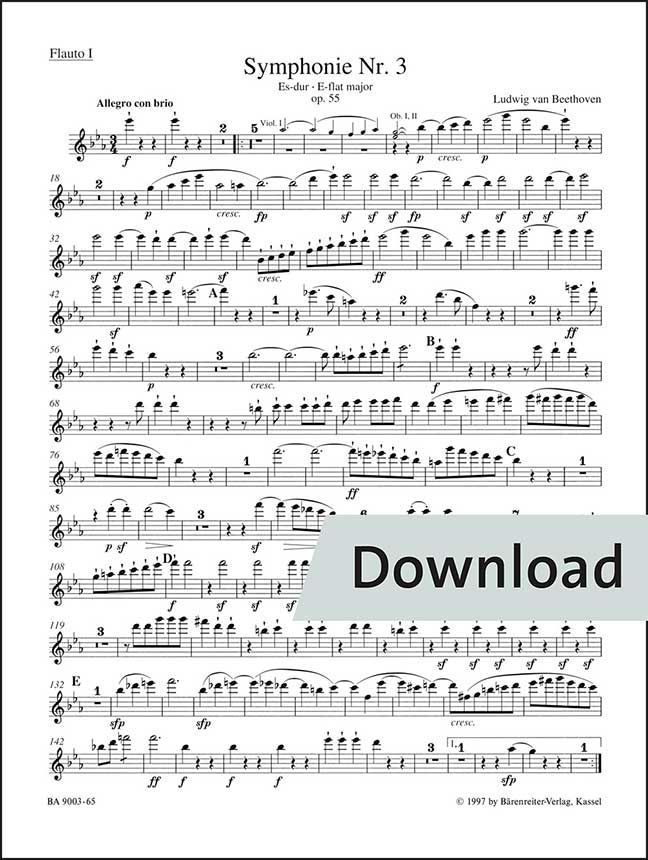 Harmoniestimmen: Flöte (2), Oboe (2), Klarinette in b (2), Fagott (2), Horn (3), Trompete (2), Pauke; Urtextausgabe (Streicherstimmen sind einzeln zu bestellen)