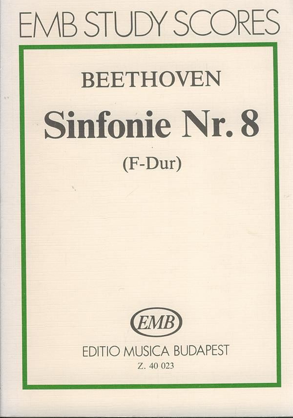 The autograph manuscript bears evidence that the symphony was completed in October 1812, merely five months after the seventh one. It was first performed in a concert given of Beethoven's works in Vienna, on February 27, 1814. Although the musicians and the critics immediately recognized its exceptional values, the 8th symphony took longer to gain popularity than its predecessors. Schumann reported as late as 1840 that this magnificent work was undeservedly seldom performed in concerts. The score was printed parallel with the orchestral parts by S. A. Steiner of Vienna in 1816. Apart from some obvious printing errors which are not listed here the various editions do notshow any significant deviations. There is only one ambiguous note we have to comment on: the final G of the first clarinet at the end of the middle section (bar 78) of the Menuetto movement. This apperars in contemporary parts either as a two-line or a three-line note. In the present edition both have been indicated, leaving it to the performer to decide which one to chooise.