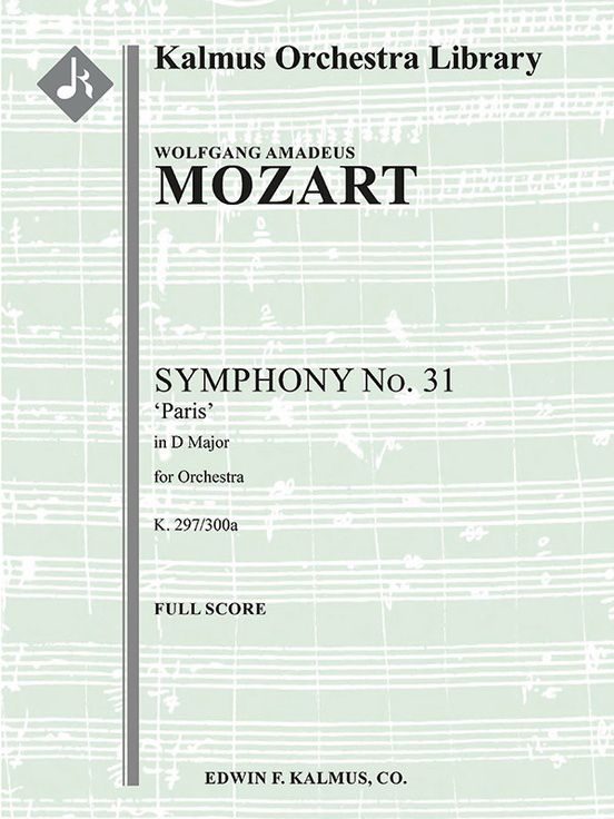 In 1778, Wolfgang Amadeus Mozart (1756-1791) charmed his way into the music scene in Paris with his Symphony No. 31 in D major, first performed on June 12 at the house of Count Sickingen by the Concert Spirituel. It follows a three-movement structure, which was preferred by his new audience, and absorbs the Parisian appetite for flamboyant style over melodic substance. Though the original slow movement (featured in this Kalmus edition) has found more popularity, Mozart wrote another one at the request of the director, Jean LeGros. In a letter to his father, Mozart declared that he felt more satisfied with the replacement, but that version is the less performed of this most famous symphony. Instrumentation: 2.2.2.2: 2.2.0.0: Timp: Str (4-4-3-3-3 in set).