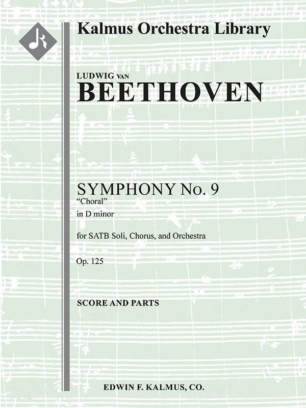 Ludwig van Beethovens (1770-1827) Chorsinfonie, die Sinfonie Nr. 9 in d-Moll, op. 125, entstand zwischen 1822 und 1824 und ist die letzte vollendete Sinfonie des Komponisten. Sie wird von vielen als Beethovens Meisterwerk angesehen und wurde am 7. Mai 1824 im Wiener Kärntnertortheater uraufgeführt, wobei Michael Umlauf und Beethoven gemeinsam dirigierten. Mit der Bearbeitung von Friedrich Schillers Gedicht "Ode an die Freude" für den Schlusssatz bleibt die Sinfonie ein wichtiger Bestandteil des Repertoires. Besetzung: 2+Picc.2.2.2+CBsn: 4.2.3.0: Timp.Perc(2-3): Str (9-8-7-6-5 im Satz): Solo SATB: Mx Chor. Die Vokalpartitur (W746491) und die Chorpartitur (W732791) sind separat erhältlich.