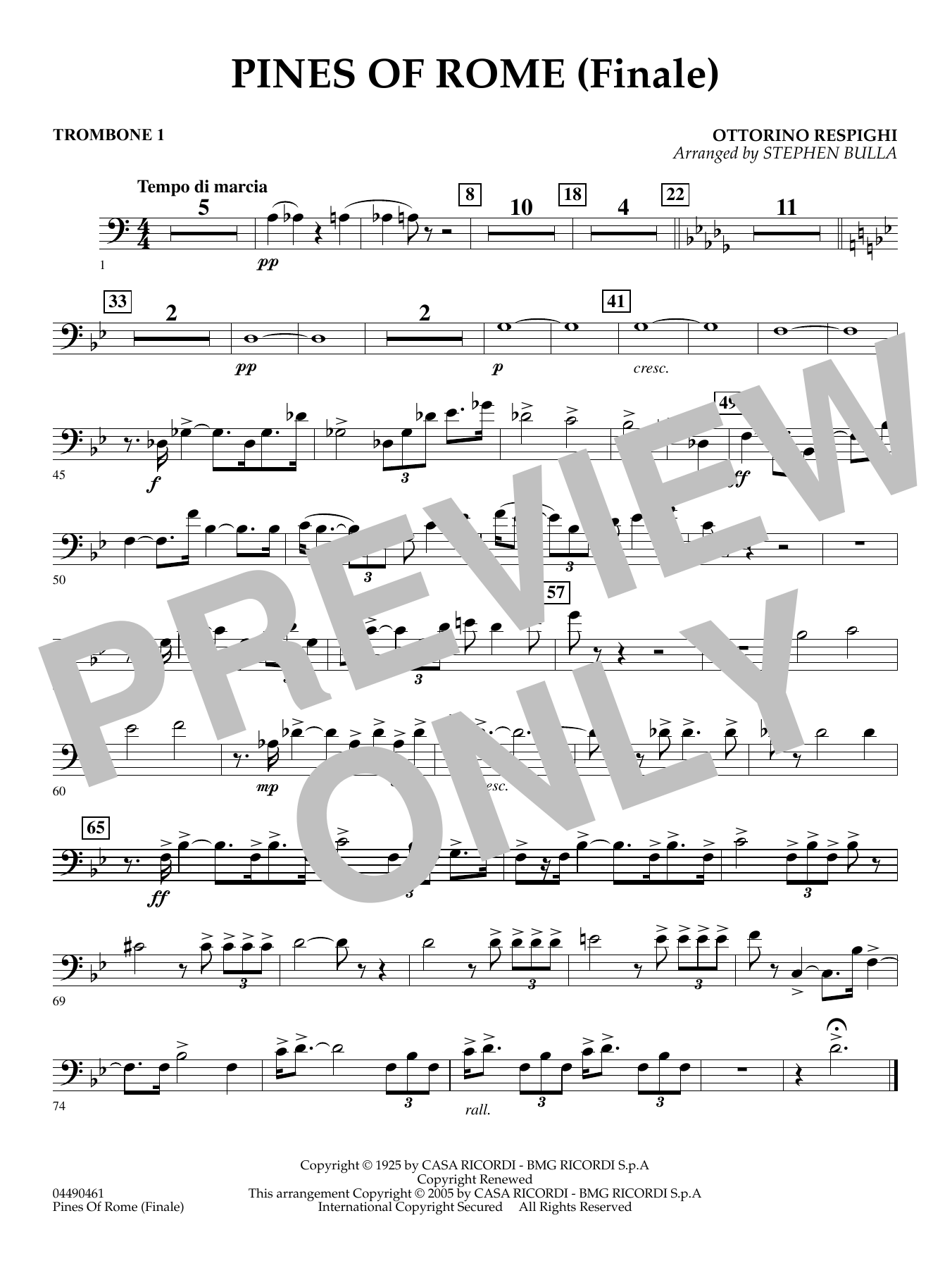 Long considered to be one of the most dramatic symphonic movements of all time, Respighi's finale is arranged to make it accessible and effective for intermediate-level groups. The tension-building final section of this monumentalwork has been carefully scored by Stephen Bulla to give your orchestra the opportunity to perform the triumphant 'ending of all endings.' (English Horn cross-cued)