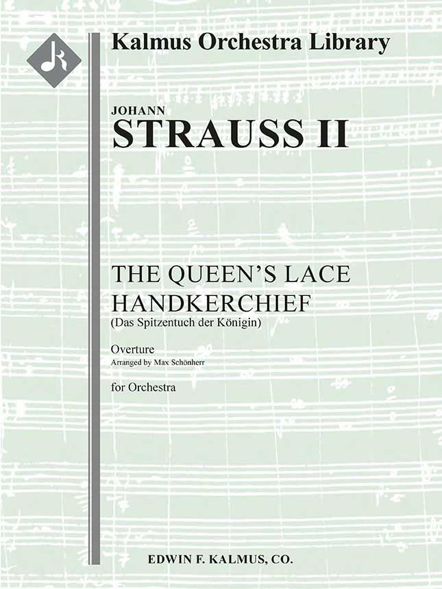 DAS SPITZENTUCH DER KÖNIGIN ist eine Operette von Johann Strauss II (1825-1899). Das Libretto von Heinrich Bohrmann-Riegen und Richard Genée basiert auf einer fiktiven Geschichte über den spanischen Schriftsteller Cervantes. Cervantes, der sich über den wohlhabenden Grafen Villalobos lustig macht, kommt ins Gefängnis, wird aber vom portugiesischen König freigelassen, weil die Königin seine literarischen Werke schätzt. Als der Graf in der Tasche des Schriftstellers ein Taschentuch mit einer Liebesbotschaft der Königin findet, kommt es zu einem Skandal, doch Cervantes findet einen raffinierten Weg, das Königspaar wieder zusammenzubringen. Die Uraufführung fand am 1. Oktober 1880 unter der Leitung des Komponisten im Theater an der Wien in Wien statt. Die vorliegende Kalmus-Ausgabe der Ouvertüre wurde von Max Schönherr bearbeitet. Instrumentation: 2(2. d. Picc).2.2.2: 4.2.3.0: Timp.Perc(2-3): Accord.Hp: Str (9.8.7.6.5 im Satz): Pno Cond Sc im Satz.