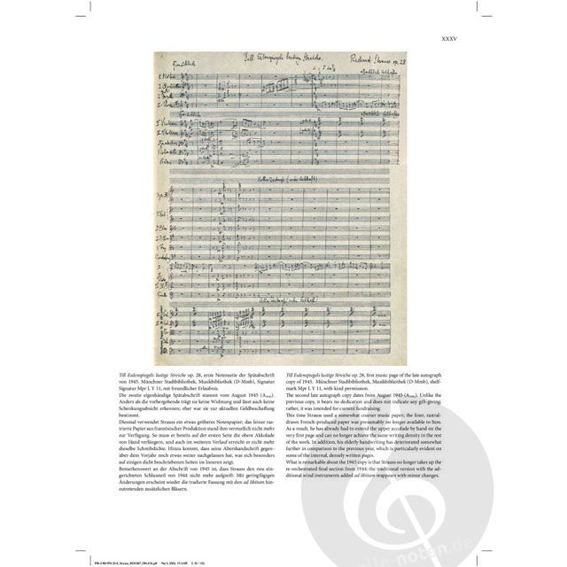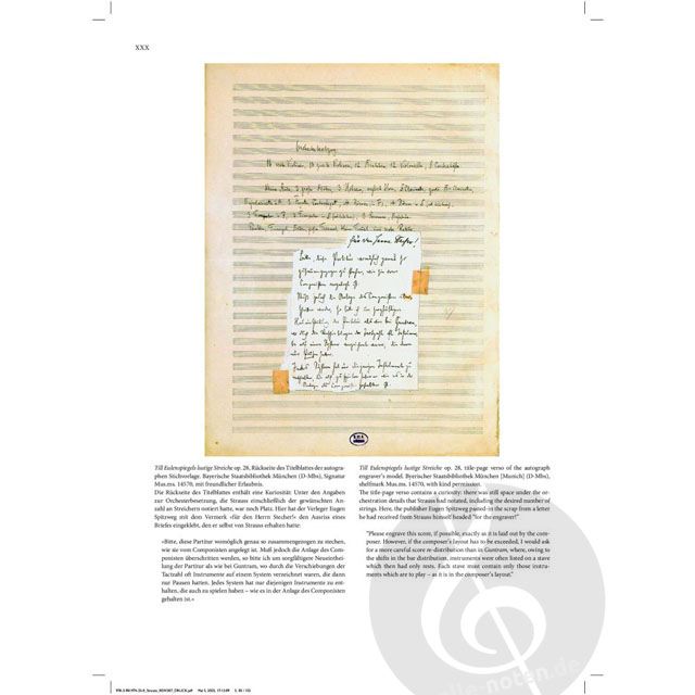Mit Till Eulenspiegels lustige Streiche op. 28 gelang Richard Strauss im Jahr 1895 eine zeitlos populäre Tondichtung, die bis heute zum anspruchsvollen Konzertrepertoire gehört. Bereits im ironisierenden, die Form eher verrätselnden als klärenden Untertitel "Nach alter Schelmenweise in Rondeauform für großes Orchester gesetzt" zeigt sich eine neue Seite des Komponisten, die dann auch die Musik durchzieht: musikalischer Humor. Die Quellenlage zum Till Eulenspiegel ist geradezu üppig: Neben den Quellen aus der Entstehungszeit existieren auch zwei späte Abschriften der gesamten Partitur, die Strauss persönlich in den Jahren 1944 ("Dem braven Till zum 50. Geburtstag!") und 1945 angefertigt hat. Als wertvolle Sammlerstücke sollten sie den Kindern und Enkeln in den Kriegs- und Krisenjahren eine materielle Stütze bilden. Dazu gehört ein mit Eintragungen versehenes Handexemplar der Partitur. Es handelt sich hier durchaus nicht um notengenaue Kopien, vielmehr spiegeln sie in zahlreichen, zumeist kleinen Veränderungen am Notentext rund 50 Jahre Aufführungserfahrung wider. Unsere Edition berücksichtigt erstmalig sämtliche Quellen und stellt einen Notentext bereit, der von vielen altbekannten Zweifelsfällen bereinigt ist und etliche kleine Detailverbesserungen enthält, darunter auch bislang unbekannte Metronomzahlen, die Strauss einem belgischen Dirigenten brieflich mitteilte. Für die musikalische Praxis dürfte es besonders interessant sein, dass Strauss 50 Jahre nach der Komposition die Instrumentation im Schlussteil neu eingerichtet hat. Ursprünglich sollten hier sieben zusätzliche Hörner und Trompeten ad libitum hinzukommen; im Kriegsjahr 1944 lässt Strauss sie komplett entfallen und verteilt deren Noten geschickt auf andere Instrumente, so dass die Reduktion kaum auffällt und das klangliche Resultat gegenüber der ursprünglichen Aufführungsoption ohne Zusatzinstrumente verbessert ist. Diese attraktive Variante ist als Anhang zum traditionellen Schluss im Band enthalten.