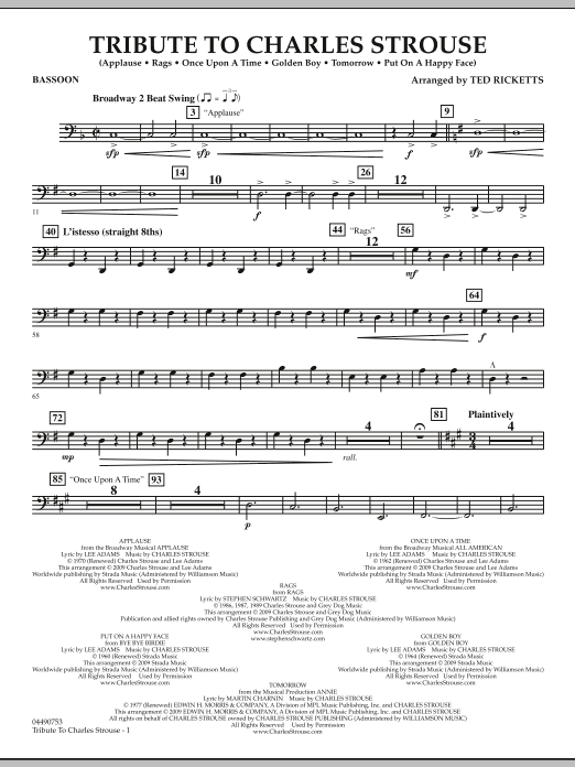 This year the entertainment world pays tribute to one of its very best, honoring the 80th birthday of composer Charles Strouse. Some of the most memorable songs from stage and film are included in this musical montage, skillfully arranged for orchestra by Ted Ricketts.