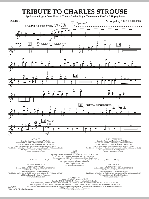 This year the entertainment world pays tribute to one of its very best, honoring the 80th birthday of composer Charles Strouse. Some of the most memorable songs from stage and film are included in this musical montage, skillfully arranged for orchestra by Ted Ricketts.