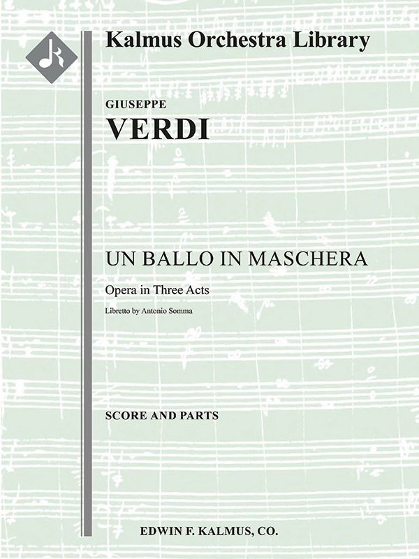 Un Ballo in Maschera (Ein Maskenball) ist eine Oper in drei Akten aus dem Jahr 1859 von Giuseppe Verdi (1813-1901) mit einem Libretto von Antonio Somma. Ursprünglich basierte sie auf dem Libretto von Eugène Scribe für Daniel Aubers fünfaktige Oper Gustave III, ou Le bal masqué von 1833 über die Ermordung des schwedischen Königs Gustav III. im Jahr 1792, der beim Besuch eines Maskenballs erschossen wurde. Verdis Version stieß jedoch auf zahlreiche Zensurvorschriften in Neapel, Rom und Frankreich. Infolgedessen wurde die Oper mehrfach umgestaltet und umbenannt, unter anderem wurde der Schauplatz von Stockholm, Schweden, nach Boston, Massachusetts, in die Kolonialzeit verlegt. Von der Auftragsvergabe bis zur Aufführung vergingen über zwei Jahre, was zu einer der frustrierendsten Erfahrungen in Verdis Karriere wurde. Heute ist die Oper ein fester Bestandteil des Opernrepertoires. Besetzung: 2(2. dPicc).2+EH.2.2: 4.2.3.1: Timp.Perc(2): Hp: Str(4.4.3.3.3 im Satz): Vocal Soli (10 Rollen, SSATTTBBBB): Chor: Banda.