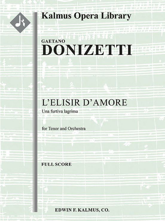 Gaetano Donizetti (1797-1848) composed his popular two-act opera buffa L'elisir d'amore hastily over six weeks in 1832 for a premiere that took place on May 12 of that year at the Teatro della Canobbiana in Milan. The comic melodrama tells the story of a simple peasant, Memorino, and his unrequited love for wealthy landowner Adina. While competing for Adina with a soldier named Belcore, Nemorino turns to a charlatan named Dr. Dulcamara to purchase a love potion after hearing the story of Tristan and Isolde, a potion that does not do for Nemorino what it was intended to do. Finally, upon discovering Nemorino's sincerity in his love for her, Adina falls in love with him. The most famous aria in the opera, Una furtiva lagrima (A Furtive Tear), is sung by Nemorino in Act II, Scene 8, after he sees a single tear in Adina's eye. He is convinced that she now loves him, but he had spent all the money he had from joining the army on his love potion, and he will have to leave the next day with his new regiment. In the aria, he pensively reflects on what he saw and Adina's new love for him. The aria is among the best-known for tenors in the repertoire. Instrumentation: 1.2.2.2: 2.0.0.0: Hp: Str (4-4-3-3-3 in set): Solo Tenor.