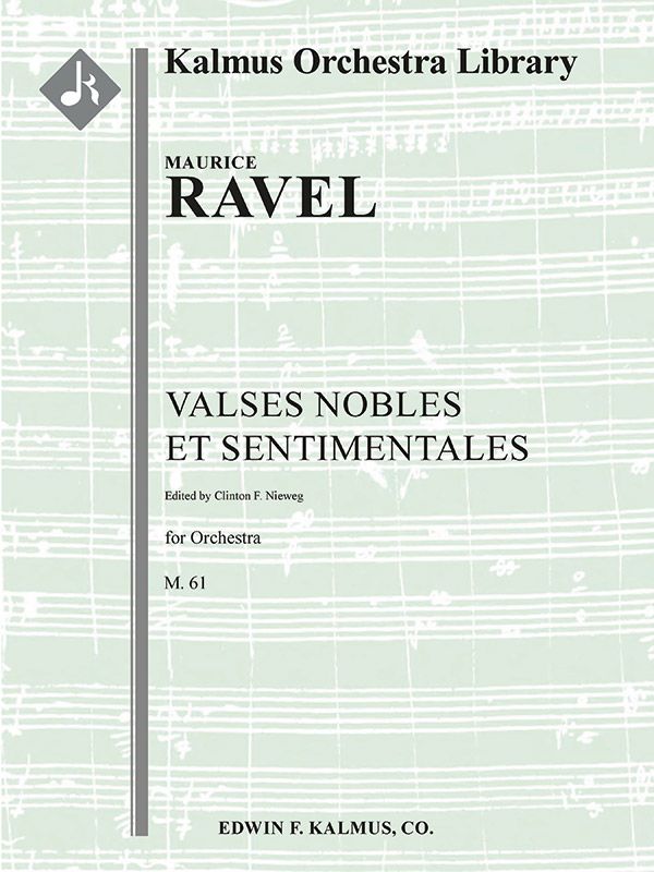 VALSES NOBLES ET SENTIMENTALES ist eines von mehreren Werken von Maurice Ravel (1875-1937), die seine Faszination für die ansteckende Einfachheit des Walzers widerspiegeln. Ausgehend von Franz Schuberts Walzersammlungen vollendete er 1911 die Originalfassung für Klavier. Die Uraufführung durch Louis Aubert fand am 9. Mai 1911 im Salle Gaveau in Paris statt. Im folgenden Jahr orchestrierte Ravel eine Ballettfassung mit dem Titel ADÉLAÏDE, OU LE LANGAGE DES FLEURS, die am 22. April im Théatre du Chatelet nach einem vom Komponisten selbst erdachten Szenario uraufgeführt wurde. Diese Publikation wurde von Clinton F. Nieweg herausgegeben und ist Teil der Reihe Nieweg Performance Editions. Besetzung: 2.2+EH.2.2: 4.2.3.1: Timp:Perc(6): Hp(2):Clst: Str(9.8.7.6.5 im Satz).