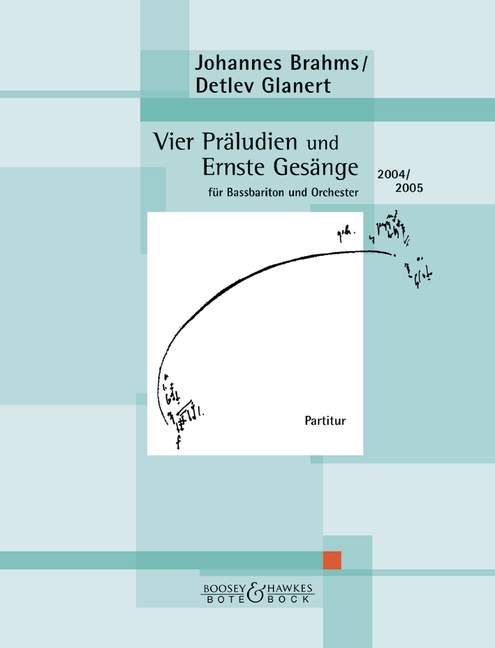 Brahms Skizzenblatt seiner 'Vier Ernsten Gesänge' deutet die Möglichkeit der Orchestrierung an. 'Detlev Glanert griff diesen Ansatz auf und dachte ihn weiter. Es setzte sie für ein Orchester, wie Brahms es für seine Symphonien verlangte, und rahmte sie durch Vorspiele und ein kurzes Nachspiel ein. Die Orchestrierung vergrössert und differenziert den Klangraum, in dem sich die Lieder bewegen. Die Vorspiele aber erweitern den Zeit- und Reflexionsraum für die Gedanken, die in den Stücken enthalten sind. Sie dienen gleichsam als Zonen der Vorbereitung und des Nachdenkens und verstärken damit den liturgischen Charakter des Werkes.' (Habakuk Traber)