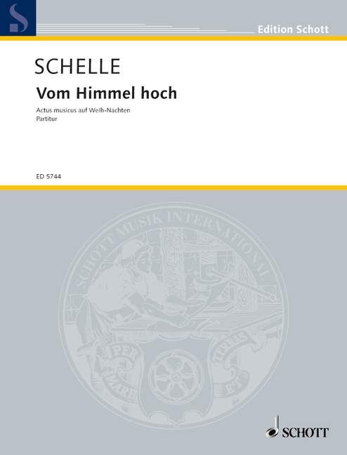 Partitur: gemischter Chor (SSATB) mit Soli (ST) und Orchester. Im Mittelpunkt dieser weihnachtlichen Komposition steht der Choral 'Vom Himmel hoch', dessen Verse in der Reihenfolge vertauscht sind und so dem Ablauf der Weihnachtsgeschichte nach dem Evangelisten Lukas (2, Vers 1-20) angepasst wurden. An zwei Stellen wird je ein Choral in der Art des Quodlibets eingefügt. Choral und Weihnachtsgeschichte verteilen sich über drei Teile, die jeweils durch eine Sonate eingeleitet werden.