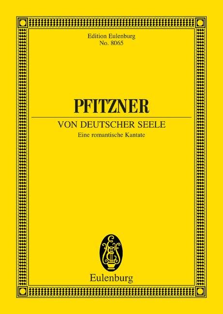 4 Solostimmen, gemischter Chor, großes Orchester und Orgel. Pfitzners Kantate 'Von deutscher Seele' liegt nun erstmals auch als Taschenpartitur vor. Grundlage der Ausgabe bildet der nochmals gründlich durchgesehene und korrigierte Erstdruck. Ferner wurden Eintragungen und