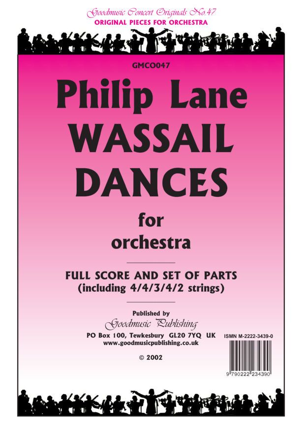 These dances were commissioned and first performed by the Gloucestershire Youth Orchestra conducted by Tony Hewitt-Jones in 1973. They received theirfirst broadcast performance on BBC radio 3 in 1985 when they were performed by the BBC Concert Orchestra conducted by Ashley Lawrence. A CD recording is available on the Naxos label played by the City of Prague Philharmonic Orchestra conducted by Ga vin Sutherland. The three dances are based on the traditional wassail songs of, respectively, Somerset, Yorkshire and Gloucestershire. All three movements take their theme and stretch it to its rhythmic and harmonic limits, within given parameters. While the outer ones maintain the bucolic nature of the original tune, the central one is more restrained, but rather than cosily pastoral throughout, has a deliberate and decided edge to the scoring that reflects the harsher landscape of its northe rn origins.
