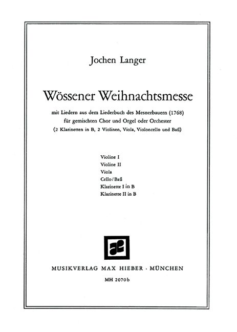 Für gemischten Chor und Orgel oder Orchester. Instrumentalsatz. Instrumentalbesetzung: 2 Klarinetten in B, 2 Violinen, Viola, Violoncello/Bass.