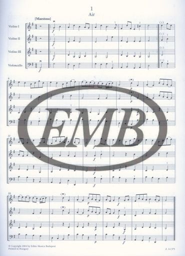 András Soós, who arranged and edited this volume, has selected from the composer's popular harpsichord suites, concerti grossi, operas and his Water Music movements and arias that are relatively simple both technically and in terms of musical expression, and suitable for performance by a junior orchestra. Thus from quite an early age, by interpreting the most demanding musical material students can become familiar with the language of the Baroque style and its mode of performance. The selection includes not only the well known Hornpipe and also a minuet from the Water Music, but also the famous aria from Rinaldo beginning 'Lascia ch'io pianga '. (Any teacher or student who isinterested can find the source of each piece in the list of contents.)
