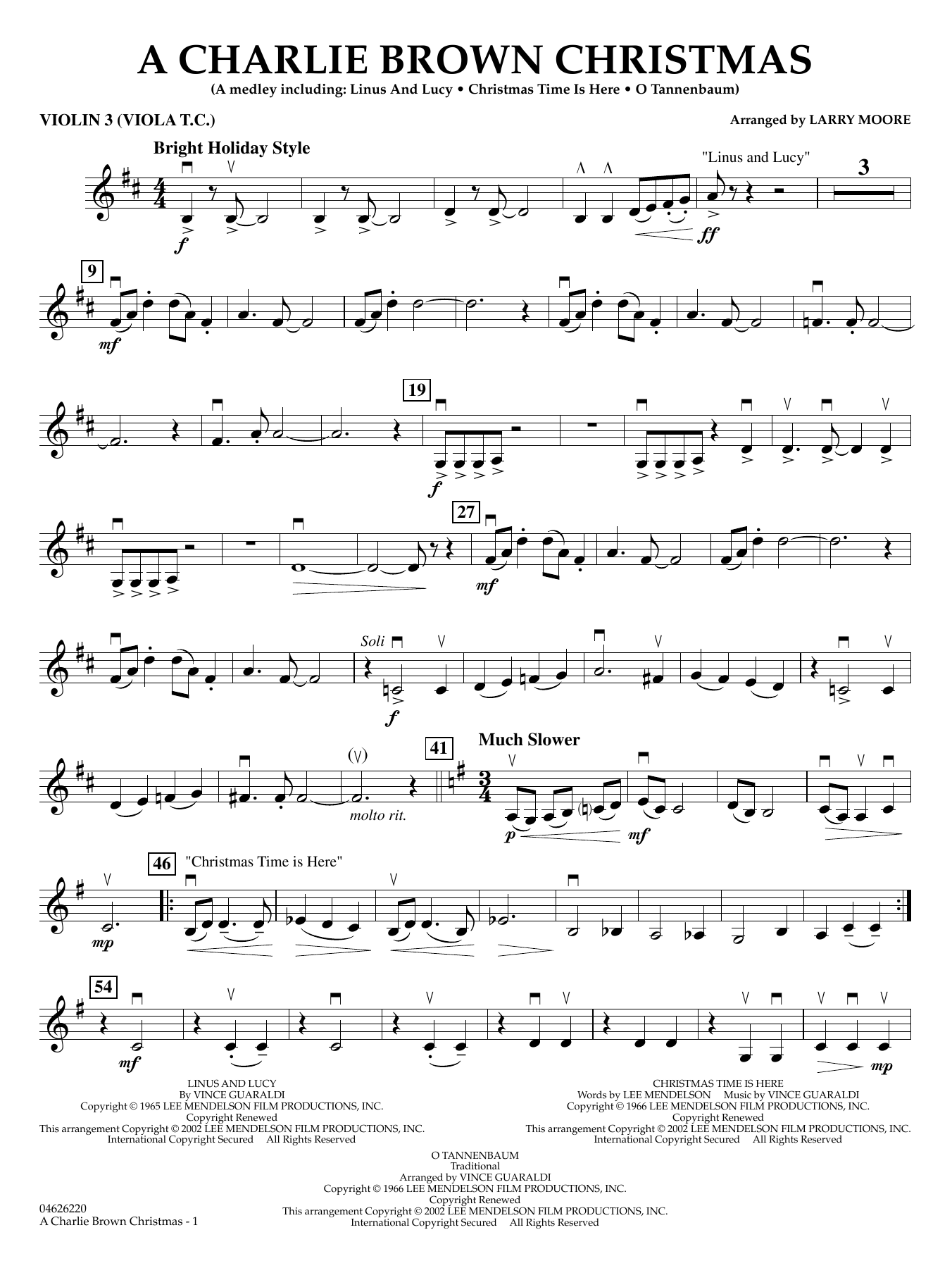 America's beloved comic character is remembered with this musical montage that features memorable songs. Larry Moore's arrangement is designed for string groups to sound their very best on a holiday program and includes: Christmas Time Is Here, O Tannenbaum, Skating, and Linus and Lucy.