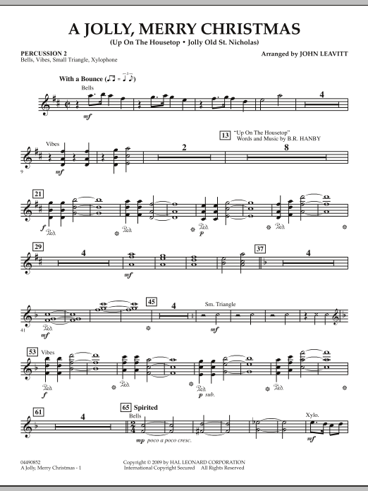 Two familiar carols (Up on the Housetop, Jolly Old St. Nicholas) have been combined in this sparkling holiday number from John Leavitt. Creative treatments with key shifts and skilled orchestration give this new arrangement great appeal.