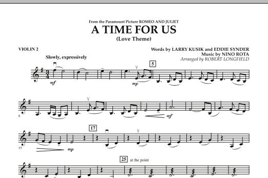 Der zeitlose Song A Time for Us aus dem Oscar-prämierten Film Romeo und Julia (der auch von dem legendären Henry Mancini aufgenommen wurde) lässt sich wunderbar für Streichorchester adaptieren. Ein klassischer Song für Ihre Aufführungsbibliothek.