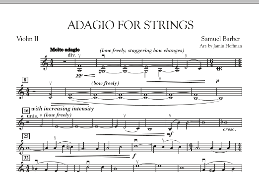 Samuel Barber's best-known work has become an icon of contemporary orchestral literature. Jamin Hoffman's arrangement now makes this landmark work accessible to intermediate-level groups with careful key and range alterations, giving your students the opportunity to play one of the most important pieces of our time. This is a must-have for every school's string library!