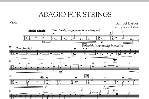 Samuel Barber's best-known work has become an icon of contemporary orchestral literature. Jamin Hoffman's arrangement now makes this landmark work accessible to intermediate-level groups with careful key and range alterations, giving your students the opportunity to play one of the most important pieces of our time. This is a must-have for every school's string library!