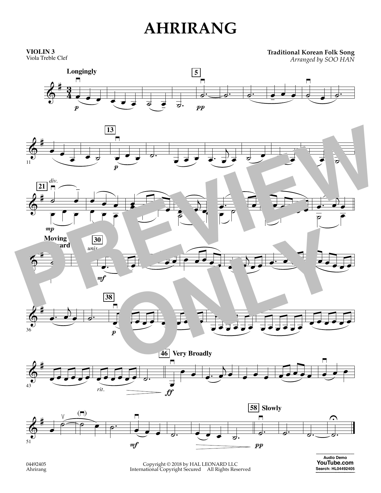 Traditional Korean Folk Song - Violin 3 (Viola Treble Clef)